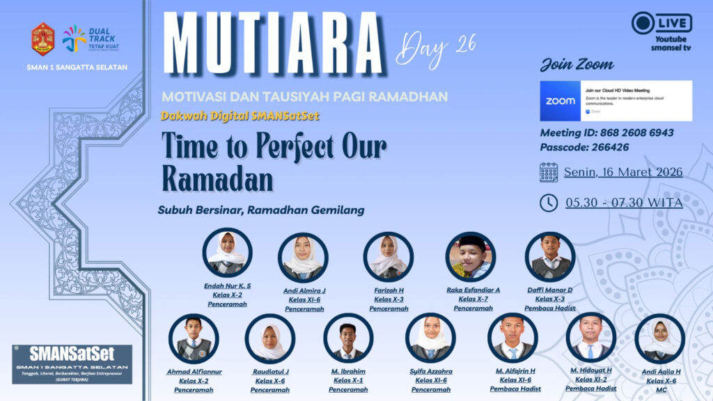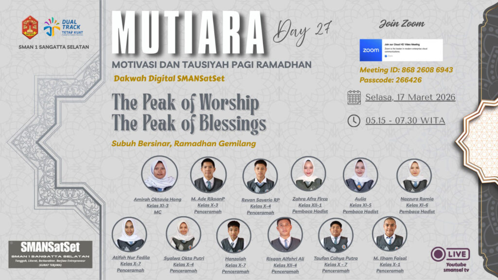 @Penulis : Dewi Meiz MUTIARA β Motivasi dan Tausiyah Pagi Ramadhan Ramadhan selalu datang membawa… - Siswa SMAN 1 Sangatta Selatan, Sultan Anugrah, Ukir Prestasi Jadi Finalis Duta Pelajar Berprestasi